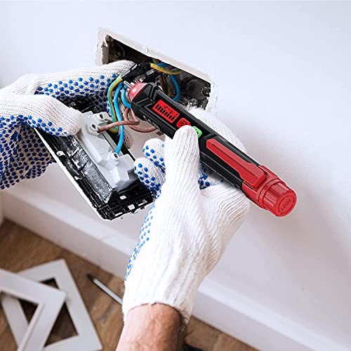 NON-CONTACT: With NCV inductive probe for AC voltage; Just place the tip near a terminal strip, outlet, or supply cord. When the tip glows red and the pen beeps, you know there’s voltage present. The live wire detector can automatically detect the live or neutral wire. Ideal for breakpoint Test. Handy circuit tester for electricians, homeowners.